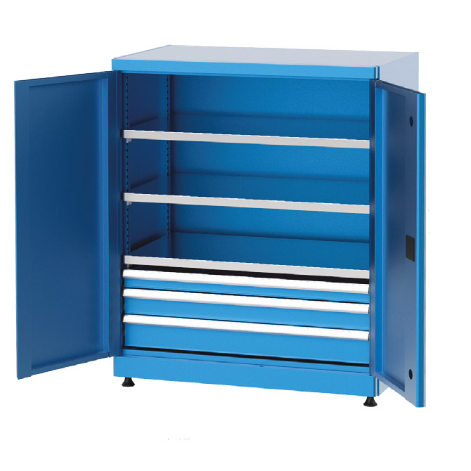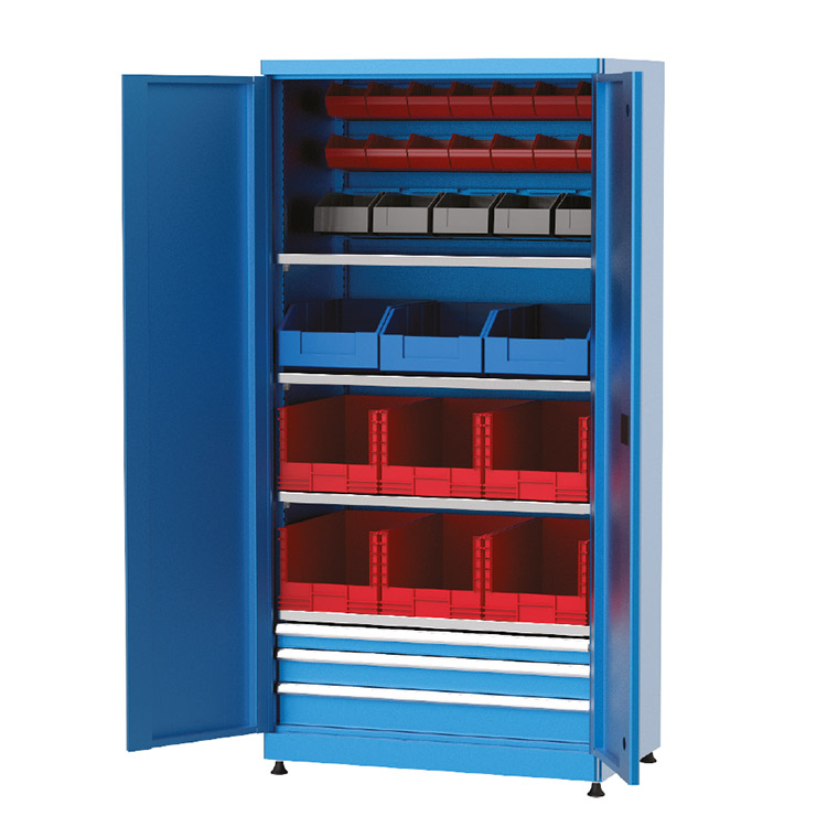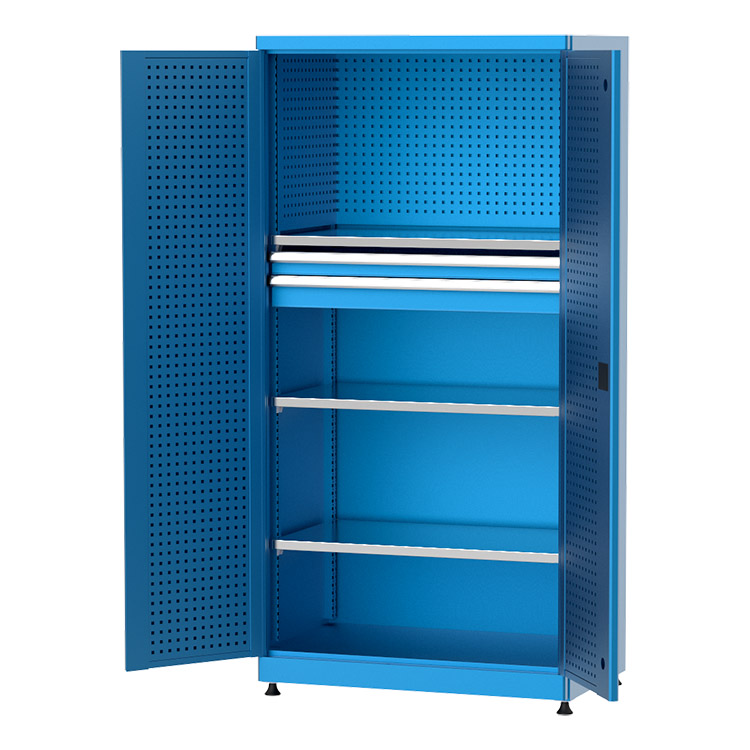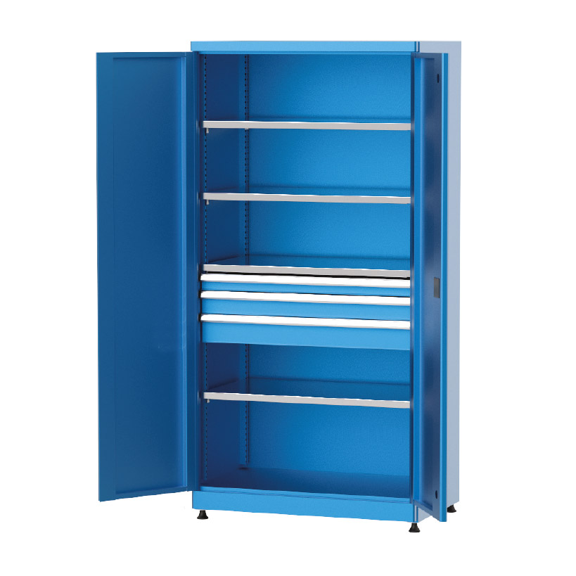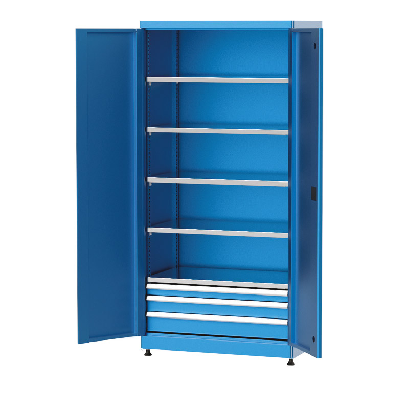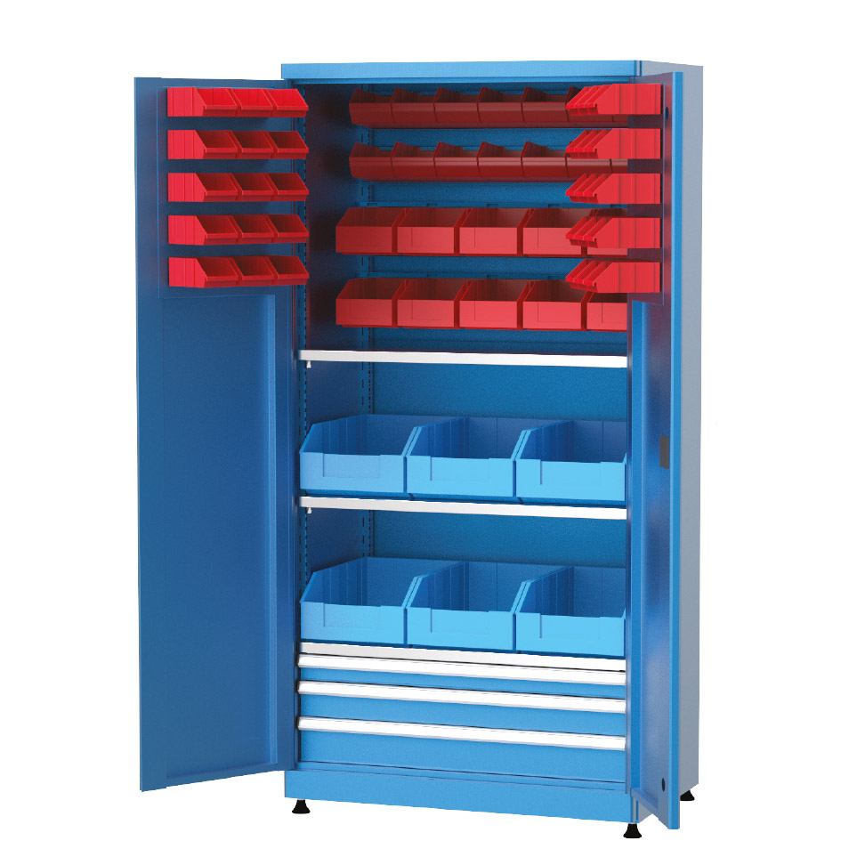 Ayarlanabilir raf sistemleri, çekmeceli ve avadanlık kutulu modüler seçeneklerinin yanı sıra askı panosu ve pleksi kapı opsiyonları ile endüstriyel malzeme dolapları, işletmelerin iş akışını hızlandırır ve düzeni artırır. Kilitli yapı sayesinde güvenlik sunarken, şeffaf pleksi kapı ile içerideki malzemelerin kolayca görülmesine olanak tanır ve ergonomik tasarımıyla hızlı erişim sağlar.